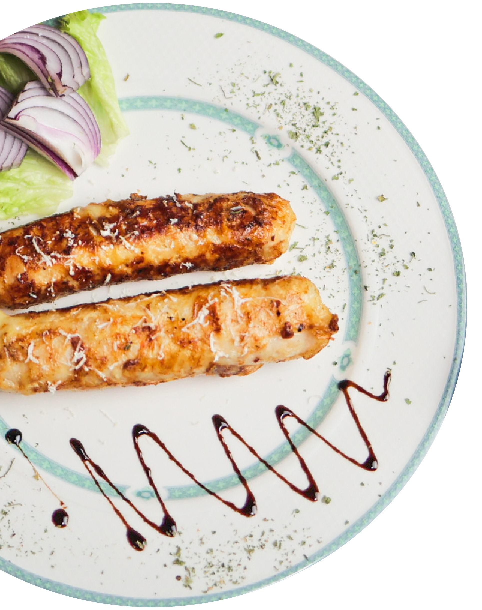 Svinjski kare punjen sirom, špekom i kiselim krastavcima, omotan u svinjsku maramicu (450g) / Grilled pork fillet filled with cheese, bacon and pickles, wrapped in a pork caul (450g)